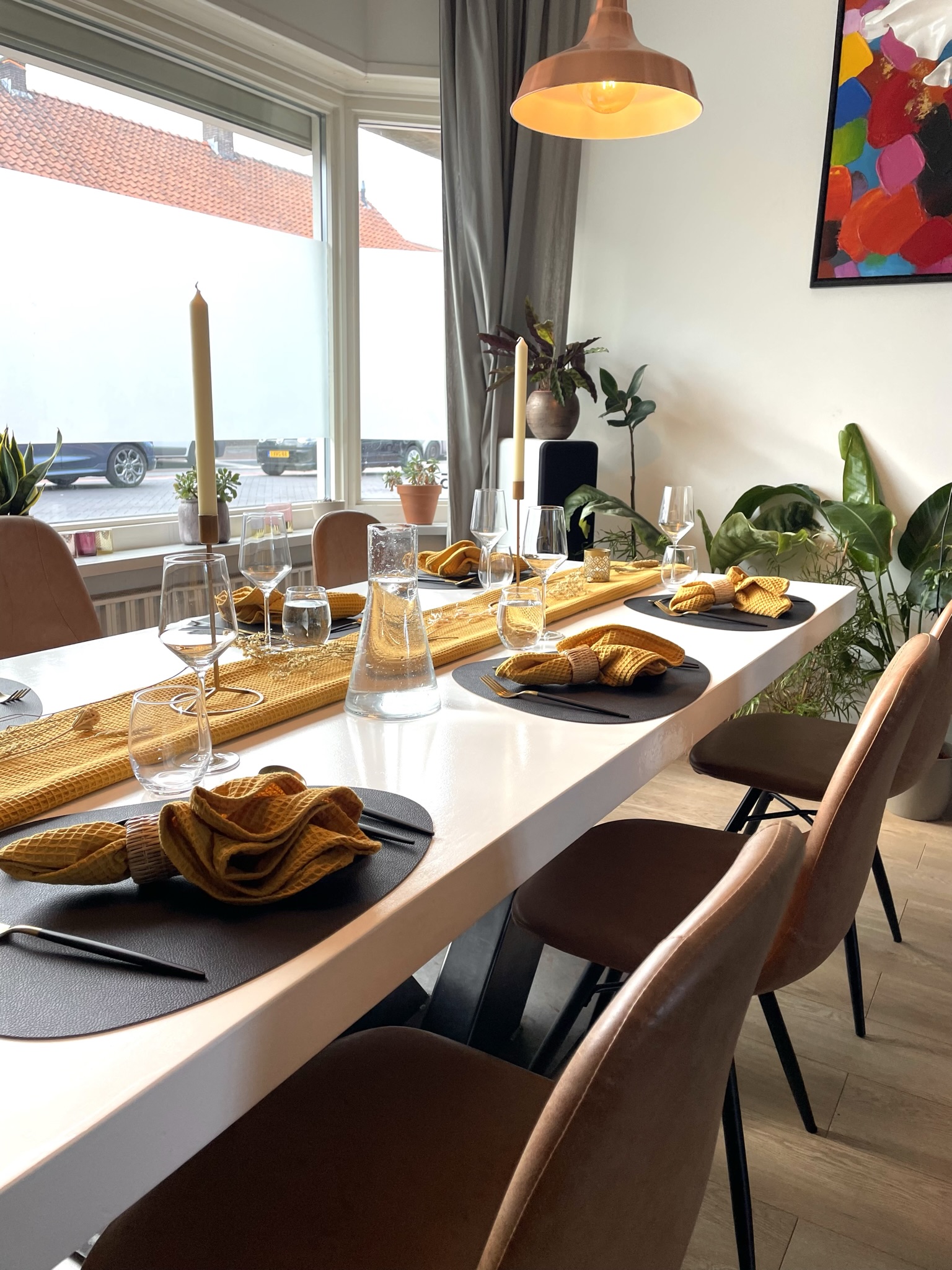 In mijn knusse woonkamer, omringd door planten en een tafel gedekt alsof je in een chique restaurant zit laat ik je smullen van een meergangen diner.